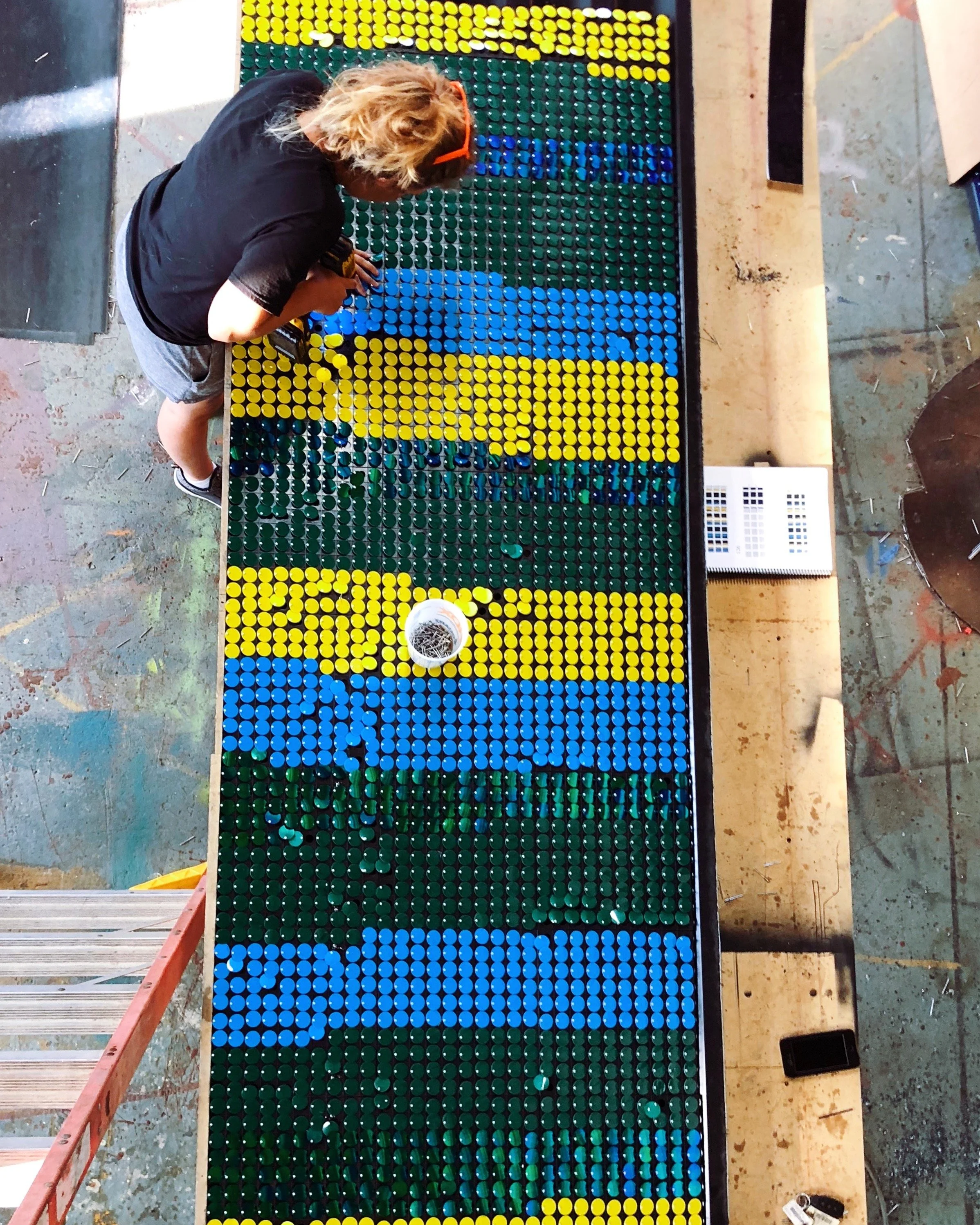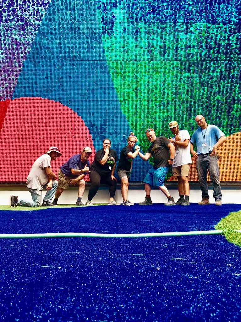 Youngblood studio hired an entire village in china and over fifty local memphians to complete this massive mural comprised of over 1.2 million sequins and located at a local children’s research hospital. My job was easy; I just had to make sure each sequin was in its proper home. to do so, I created a paint-by-number system on steroids that could easily communicate to workers in each stage of the assembly process, which color sequin goes where. I was in my happy place during this project.
