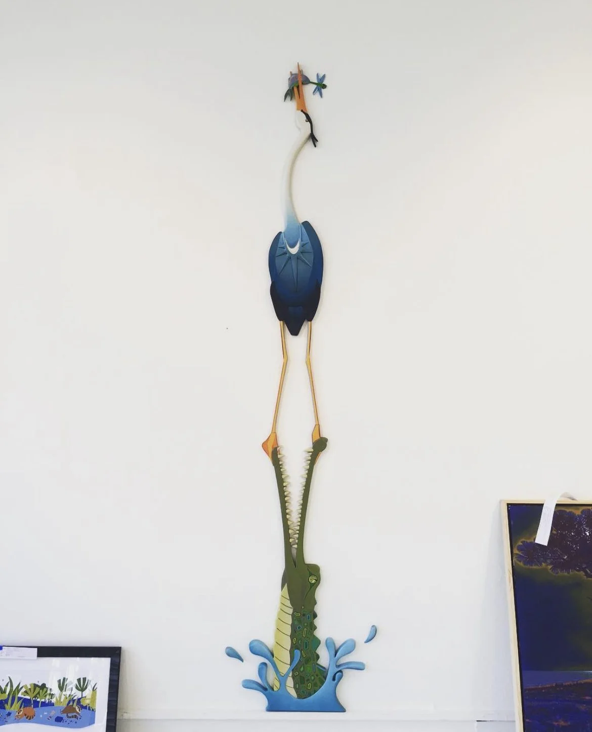 I had almost as much fun making this piece as going to horn island with other alumni from Memphis college of art. It is a low relief, hand-carved, hand-painted wall-bound sculpture made with almost too much love.